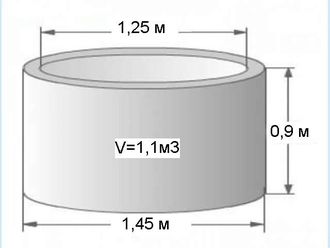 Кольцо сантехническое 1,25м (высота 0,9м) 4620 руб. В корзину Внутренний диаметр - 1,25м Внешний диаметр - 1,45м Высота - 0,9м Толщина стенки - 0,1м Вес кольца - 750кг Объем кольца - 1,1 м3 Класс бетона - В15 (М200) ГОСТ 8020-90
