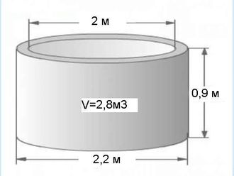 Кольцо сантехническое 2м (высота 0,9м) 8330 руб. В корзину Внутренний диаметр - 2м Внешний диаметр - 2,2м Высота - 0,9м Толщина стенки - 0,1м Вес кольца - 1460кг Объем кольца - 2,8м3 Класс бетона - В15 (М200) ГОСТ 8020-90